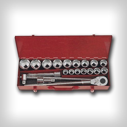 - 16 pcs 6-pt. Flank socket: 19; 21; 22; 23; 24; 26; 27; 29; 30; 32; 35; 36; 38; 41; 46; 50 mm