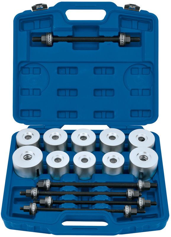 Expert Quality, bearing, seal and bush insertion and extraction kit, perfectly designed to aid with accurate and controlled insertion or removal of a host of different bearings, including normal bearings, silent bearings, hydraulic bearings, rubber bearings, bearing bushes, shaft seals etc.
