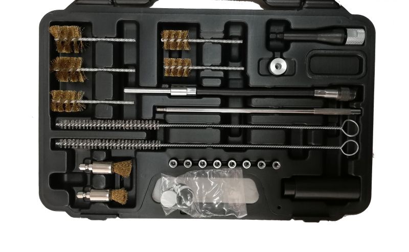 It contains a set of tools that ensure effective cleaning of the injector hole and the surface of the bed before inserting the new nozzle.