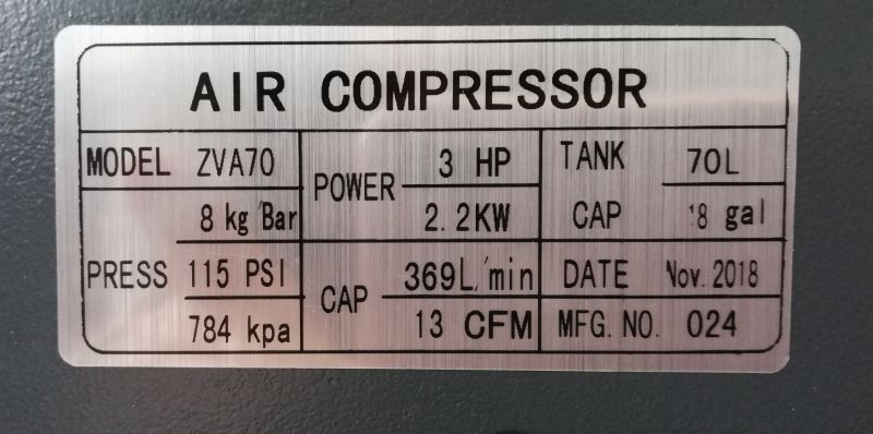Air Pressure: 8 Bar / 115 Psi