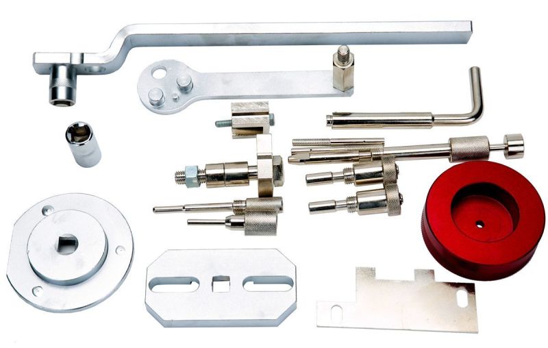The set contents a water sensor installation socket, crankshaft turning tool, timing cover centring plate, oil pump setting plate as well as camshaft and crankshaft locking tools.