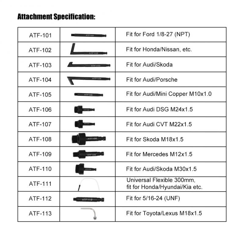 - Complete Set: With 13 different adapters, you'll have the right tool for almost any transmission fluid filling job.