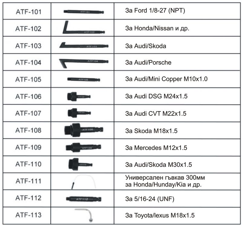 - ATF-110: For Audi/VW, Skoda M30x1.5