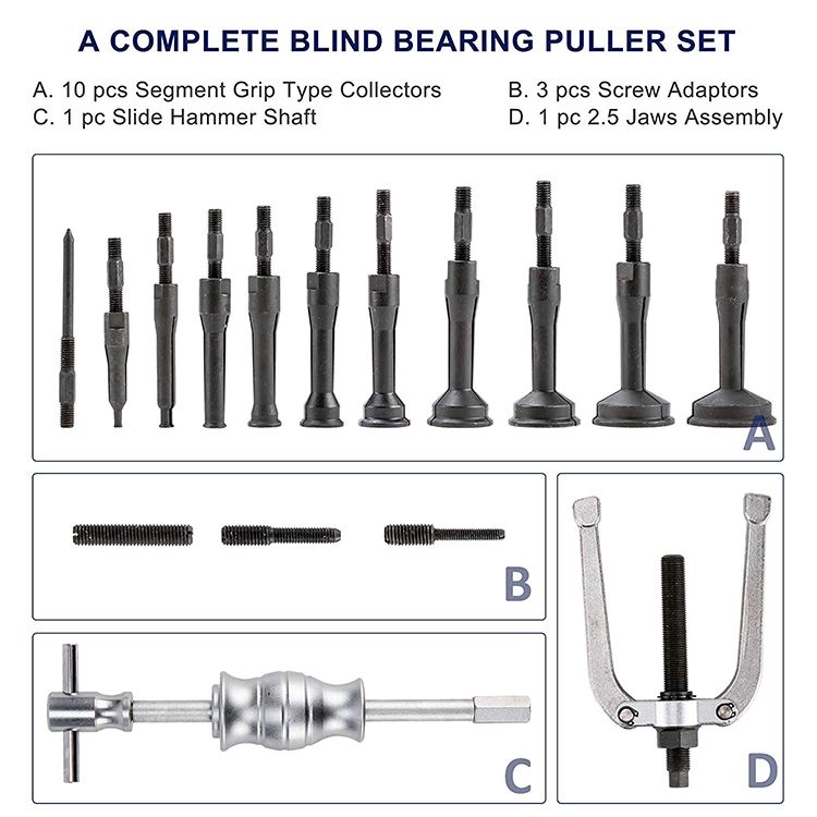 16 Pcs Bearing extractor set with slidding hammer, 50148