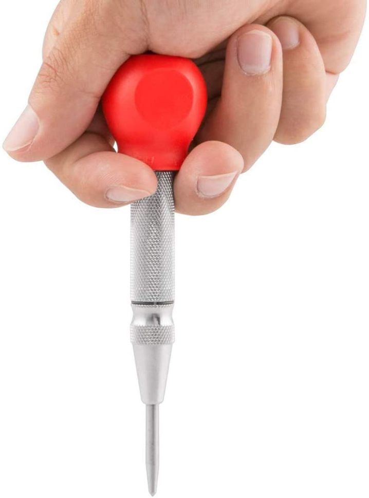 5" center punch is spring loaded with adjustable stroke; can accommodate various types of materials such as wood, plastic, metal, glass, leather.