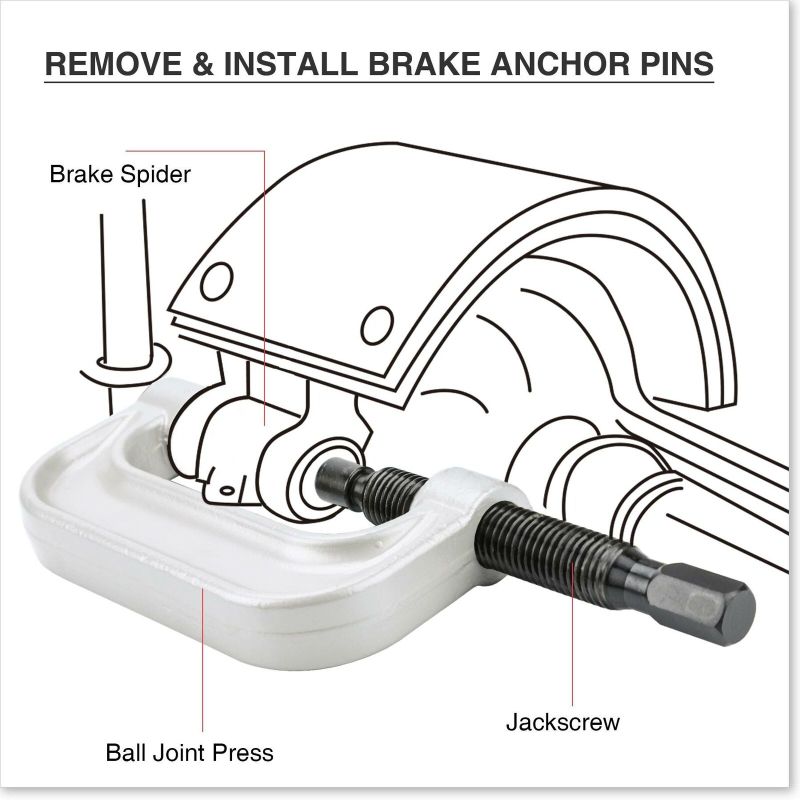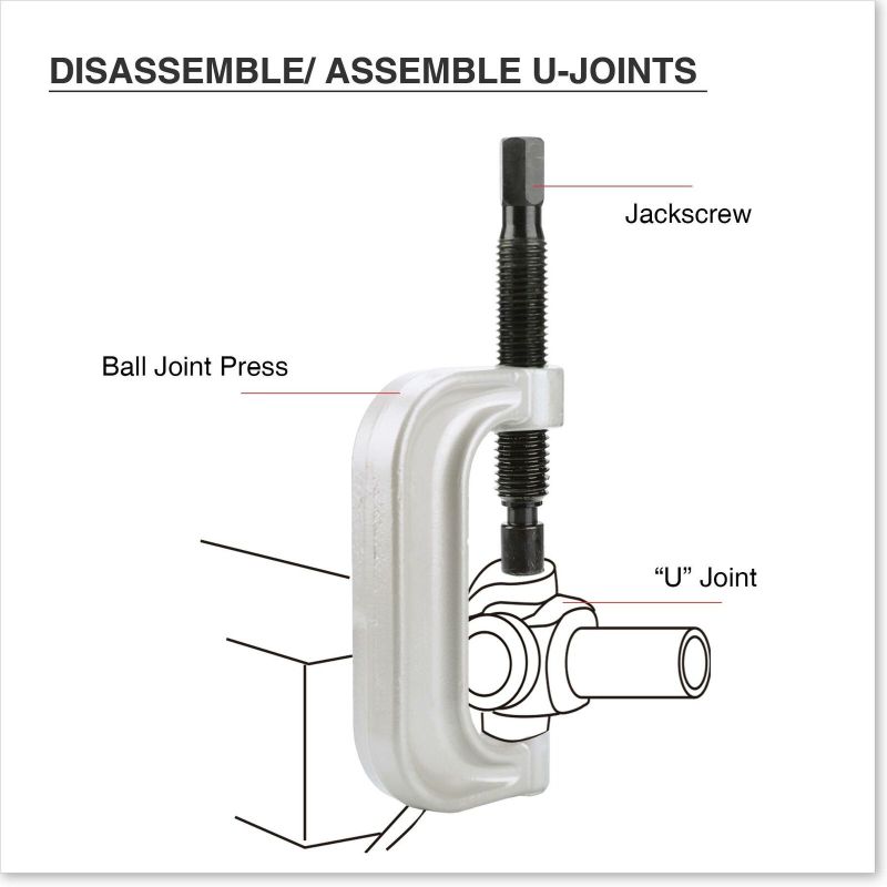 Designed to easily remove and replace press-fit upper and lower ball joints with receiver tubes and adapters for most full-size GM, Ford, and Dodge vehicles.