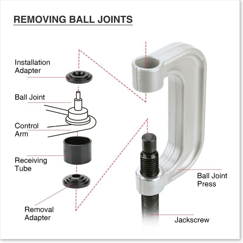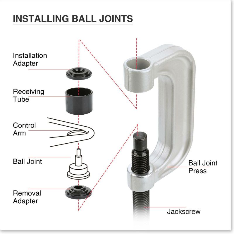 Includes all receiver tubes and removing/installing adapters for press-fit upper and lower ball joint service.