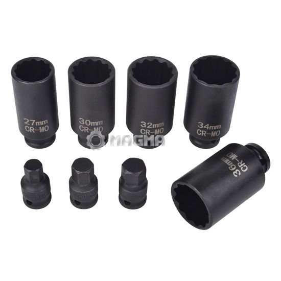 5 pcs 1/2"Dr. 12-pt Impact deep sockets: 27, 30, 32, 34, 36mm