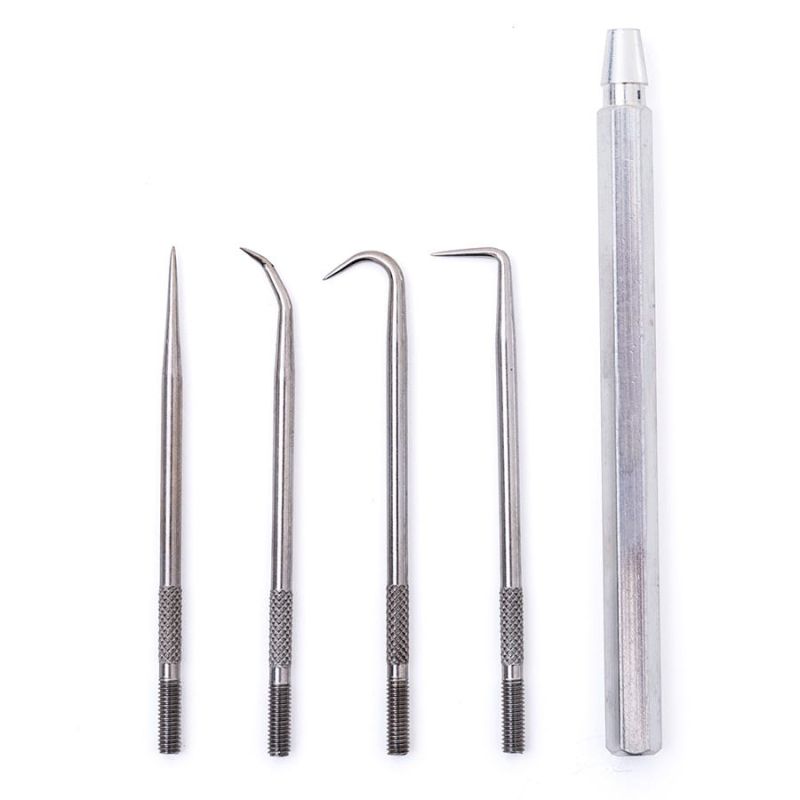 These 5 piece mini pick & hook sets have stainless steel points and a aluminium handle.