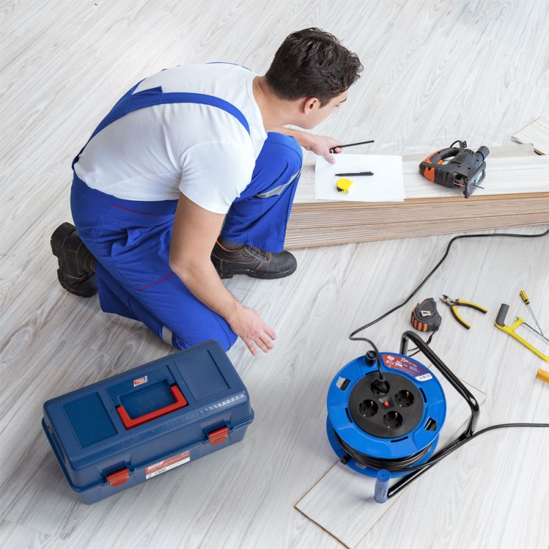 The Tayg 772603 cable reel extension is a sturdy and reliable accessory designed to provide electrical power at a distance of up to 25 meters. It is suitable for both home use and in workshops and dry work environments. The reel body is made of durable plastic in blue and black, with a reinforced metal stand for stability. It features four Schuko type sockets (2P+T) with earthing and a built-in thermostatic protection that cuts the current in case of overheating, ensuring safety. The cable has a length of 25 m and a cross-section of 3x1.5 mm², type H05VV-F, and offers a maximum power of up to 3500 W when fully unwound. The IP20 protection rating makes it suitable for indoor use only.