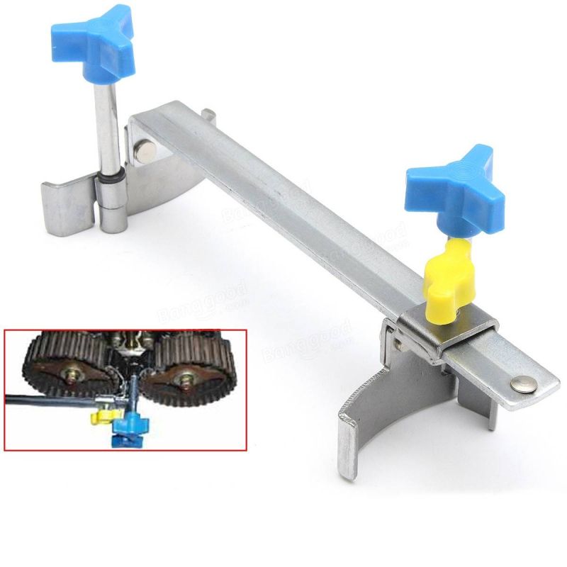 Special design to lock twin camshafts to timing marks during timing belt replacement