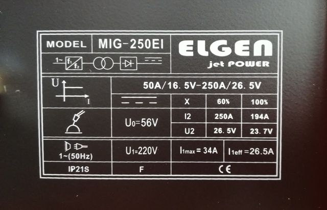 Μηχανή συγκόλλησης inverter 250A IGBT MIG/MAG και MMA Elgen Jet Power - MIG-250EI