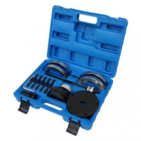 Το κιτ αφαίρεσης και εγκατάστασης ρουλεμάν τροχών με ενσωματωμένη φλάντζα χρησιμεύει για την απρόσκοπτη και γρήγορη αντικατάσταση του κατεστραμμένου ρουλεμάν γενιάς - 2 - 85 mm σε όλα τα οχήματα Volkswagen (Touareg & T5 με 16” τροχούς/ανάρτηση, Transporter, Multivan). Η ευκολία αυτού του κιτ είναι ότι μπορεί να χρησιμοποιηθεί σε κατάσταση χωρίς να χρειαστεί να αφαιρέσετε τον αποσβεστήρα του τροχού από το αυτοκίνητο. Αυτό θα εξοικονομήσει πολύ χρόνο και την ανάγκη για υποστηρικτικό προσωπικό και επιπλέον εξοπλισμό (πρέσα κ.λπ.). Αυτό το εργαλείο είναι απαραίτητο για κάθε γκαράζ.