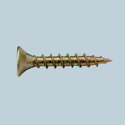 Βίδα μοριοσανίδας, Πλήρες σπείρωμα, κίτρινη επιμεταλλωμένη ψευδάργυρος, με κεφαλή διπλό PZ, μικρό κουτί, και στη συνέχεια συσκευασία σε χαρτοκιβώτιο